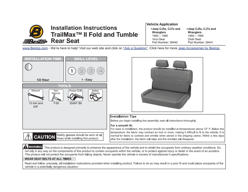 - Available In Fixed Seat Back/No Headrests For Older Jeep Classics